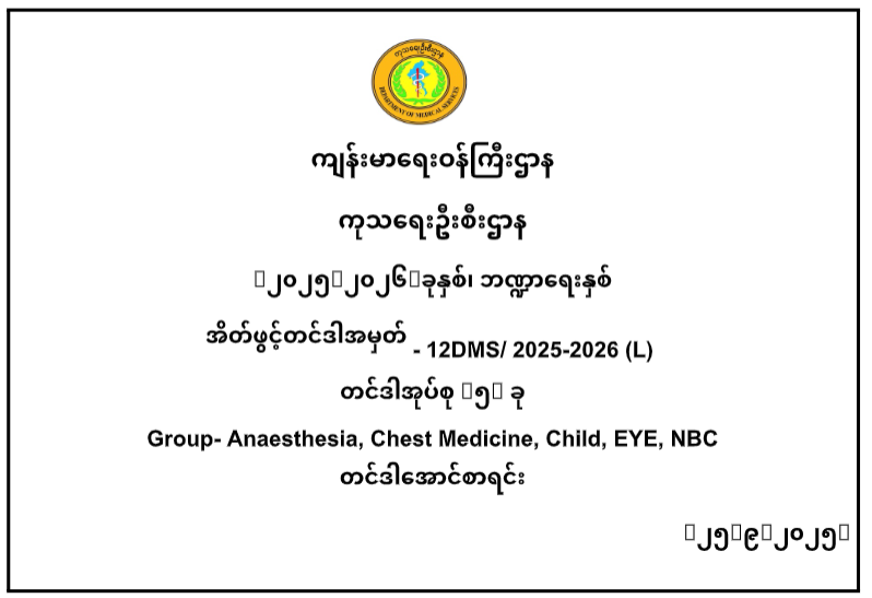 12DMS/2025-2026(L) ၏ အောင်စာရင်း