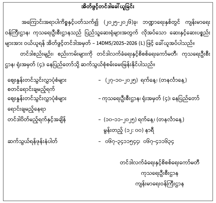 တင်ဒါအမှတ် 14DMS/ 2025-2026 (L)