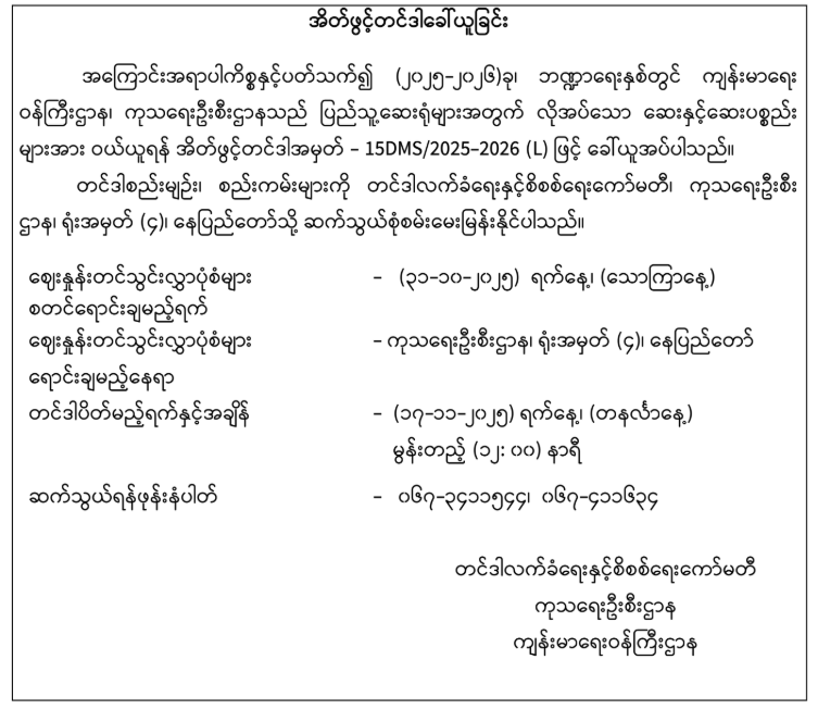 15DMS/2025-2026(L) အိတ်ဖွင့်တင်ဒါခေါ်ယူခြင်း