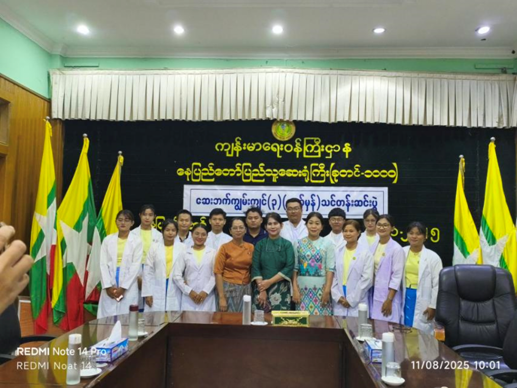 ကျန်းမာရေးဝန်ကြီးဌာန၊ ကုသရေးဦးစီးဌာန၊ ဗဟိုအဆင့်/ တိုင်းဒေသကြီး/ ပြည်နယ်ပြည်သူ့ ဆေးရုံများတွင် လစ်လပ်လျက်ရှိသော ဆေးဘက်ကျွမ်းကျင်(၃)(ဓာတ်မှန်) ရာထူးနေရာများသို့ တိုးမြှင့်ခန့်ထားနိုင်ရေးအတွက် ပြည်သူ့ဆေးရုံကြီး(၁၂)ရုံတွင် ဆေးဘက်ကျွမ်းကျင် (၃)(ဓာတ်မှန်) (၆)လသင်တန်းများကို (၅-၅-၂၀၂၅) ရက်နေ့မှ (၅-၁၁-၂၀၂၅)ရက်နေ့အထိ ဖွင့်လှစ်သင်ကြား ခဲ့ပါသည်။