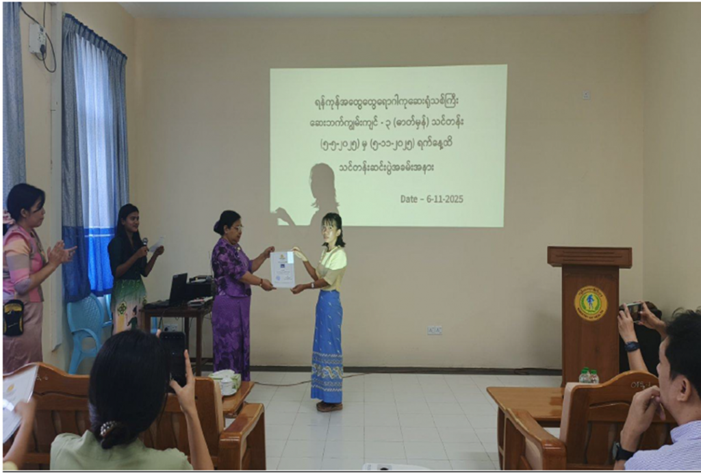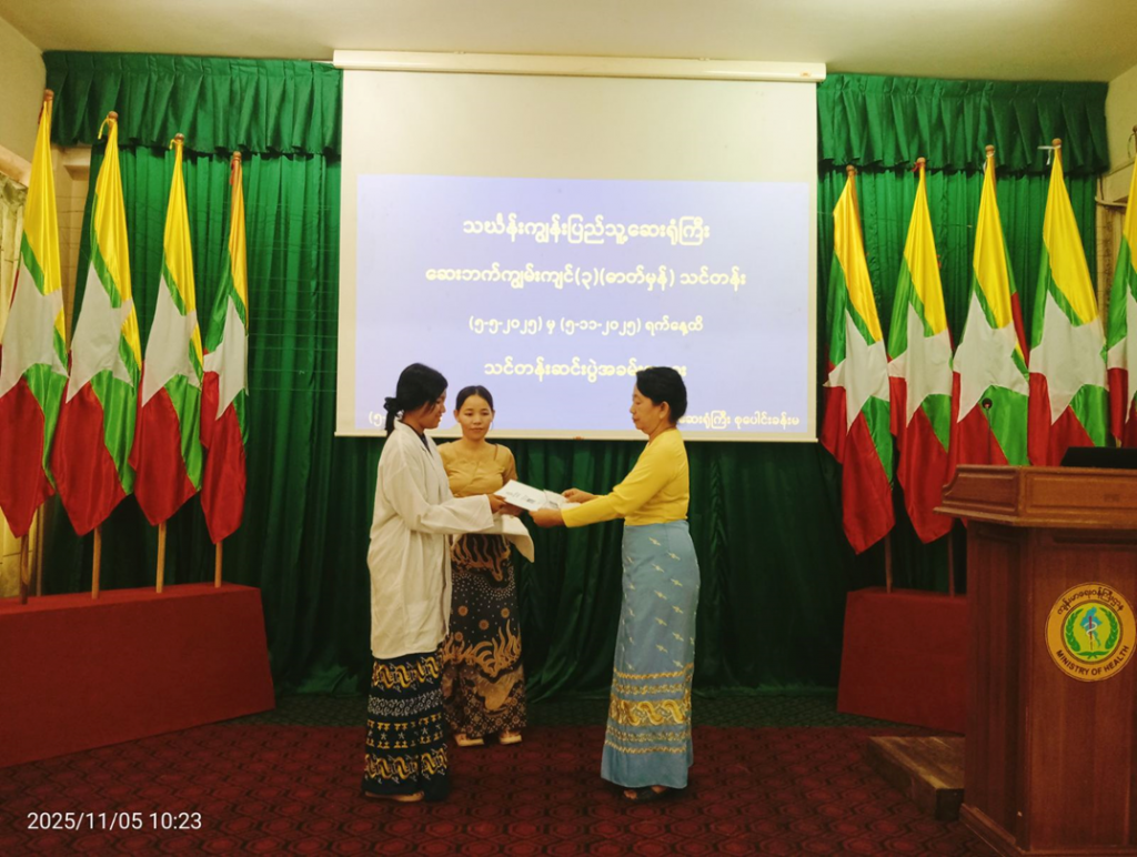 အဆိုပါ သင်တန်းများကို ဗဟိုအဆင့်ဆေးရုံကြီး(၈)ရုံနှင့် တိုင်းဒေသကြီး/ ပြည်နယ်ပြည်သူ့ ဆေးရုံကြီး(၄)ရုံတို့တွင် ဖွင့်လှစ်သင်ကြားပေးခဲ့ရာ သင်တန်းသား / သူ (၂၈၉) ဦးတို့ တက်ရောက်ခဲ့ ကြပြီး ၂၀၂၅ ခုနှစ်၊ နိုဝင်ဘာလတွင် သက်ဆိုင်ရာဆေးရုံကြီးများ၌ သင်တန်းဆင်းအောင်လက်မှတ် ပေးအပ်ပွဲ အခမ်းအနားများ ကျင်းပဆောင်ရွက်ခဲ့ကြပါသည်။